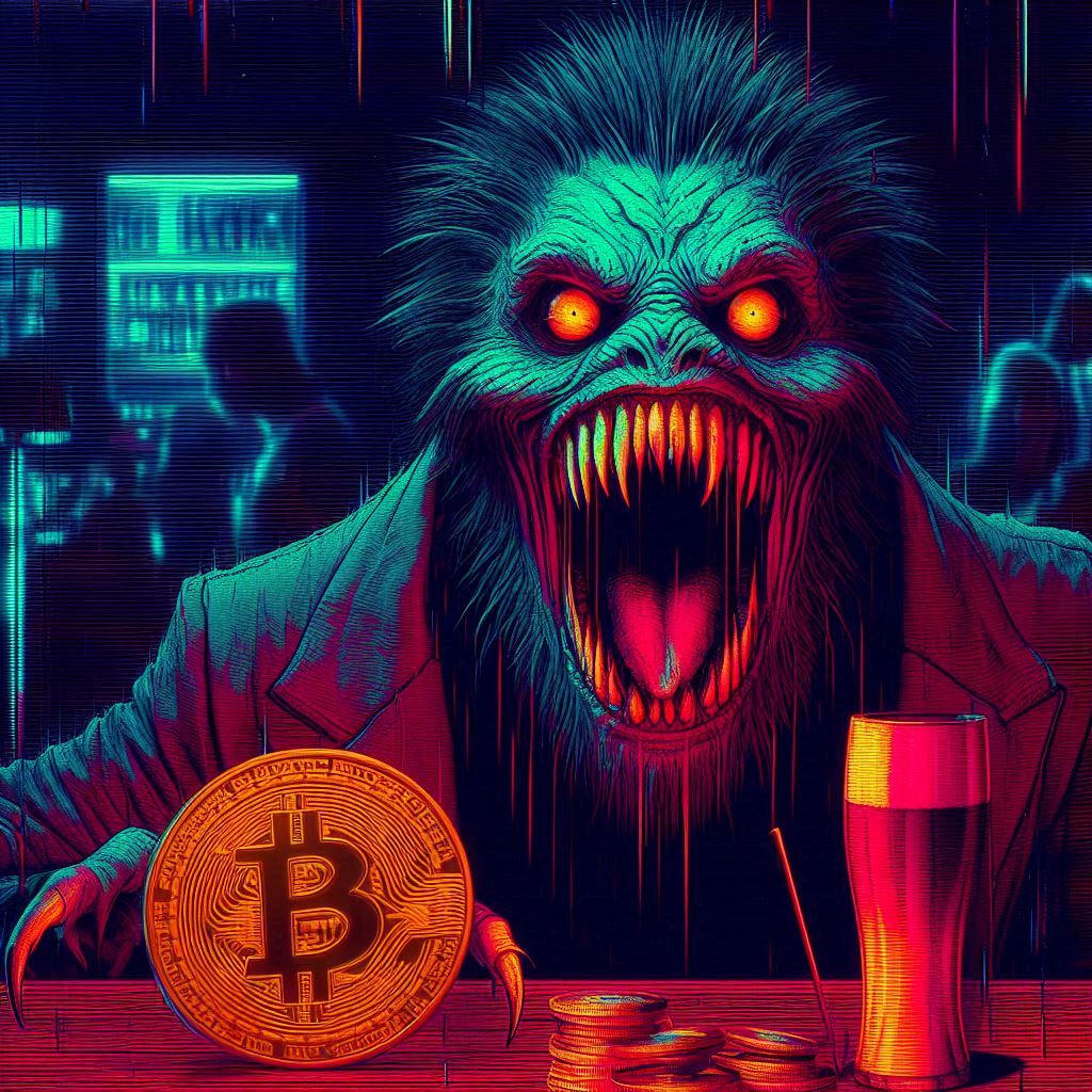 The hunt for Bitcoin isn’t always brutal. Sometimes, it’s silent—smooth, calculated, unfolding in the hazy depths of nighttime bars.As people sip their cocktails, lost in the pounding bass of neon-lit DJ booths, no one suspects that the monsters are already here.The Bitcoin Monsters never strike with chaos in places like these—no, they prefer to watch. Some lurk in the shadows, silently passing those who hold secret Bitcoin wallets. Others appear as bizarre illusions, blending seamlessly into the electric swirl of the nightlife.Deals are made in the dark—hidden trades, final blockchain transactions, fortunes vanishing into the void. And the monsters know that if they wait long enough, an abandoned digital key or a careless code entry will be theirs to claim.Do some patrons feel their presence? And if they do… what happens to those who share a last drink with the monsters?