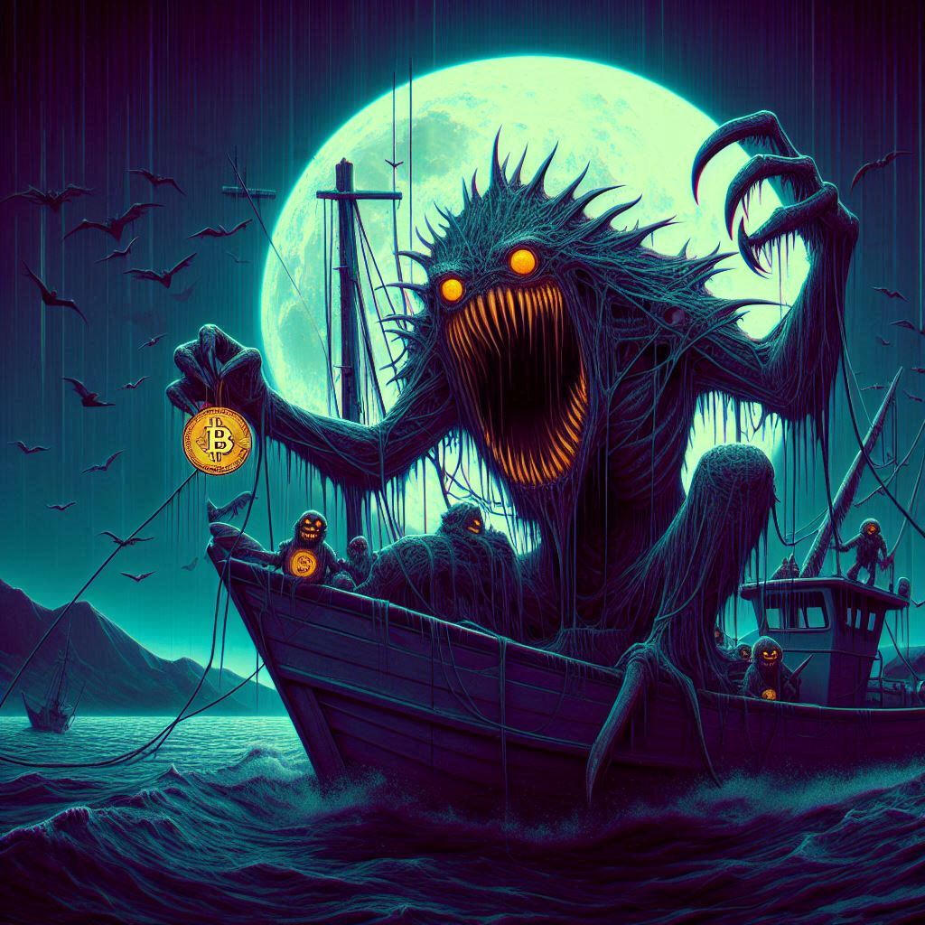 Far out in the open ocean, where the waves crash endlessly and the fog blurs the horizon, Bitcoin Monsters lurk aboard aging fishing vessels. These spectral creatures navigate the deep waters of risk and fortune, embodying the thrill of chasing profits in an unpredictable sea.Masters of financial tides – Just like seasoned fishermen waiting for the perfect catch, these monsters know that timing is everything in the crypto markets. Survivors of turbulent waters – As storms roll in, many are lost to the depths, while the strongest withstand the chaos, emerging richer and wiser. Hunters of elusive treasures – Some legends say that hidden in the ocean’s abyss, ancient wallets lie untouched, holding forgotten riches that will never surface.This collection is a powerful metaphor for the dangers and rewards of the crypto world, perfect for those who brave the unknown in pursuit of something greater.