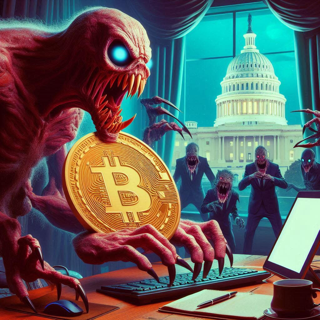 Deep within the halls of Washington, D.C., where whispers of power echo through history, something new and terrifying has emerged—something that neither politicians nor world leaders saw coming.It started as a harmless anomaly—a strange glitch on the presidential teleprompter during a national address. Then came the distorted data leaks, reports of unexplainable blockchain transactions appearing in official government systems.And now? The Bitcoin Monsters have infiltrated the White House itself.They slither through the corridors, crawling up marble pillars, their pixelated forms flickering through security cameras as if defying reality itself. Advisors panic as government documents transform into encrypted Bitcoin transactions, rewritten by unseen forces.Reporters watch in horror as the Oval Office's official broadcast feed is hijacked, showing monstrous figures laughing, their jagged mouths spewing crypto secrets no human should know.But the worst part? The national budget now moves in Bitcoin, mysteriously controlled by a blockchain address that nobody can trace.Is this a cyberattack, or something far more sinister? Are the Bitcoin Monsters negotiating, or declaring control? And most importantly—can anyone stop them before they rewrite history forever?Washington trembles. And the Bitcoin Monsters are just getting started.