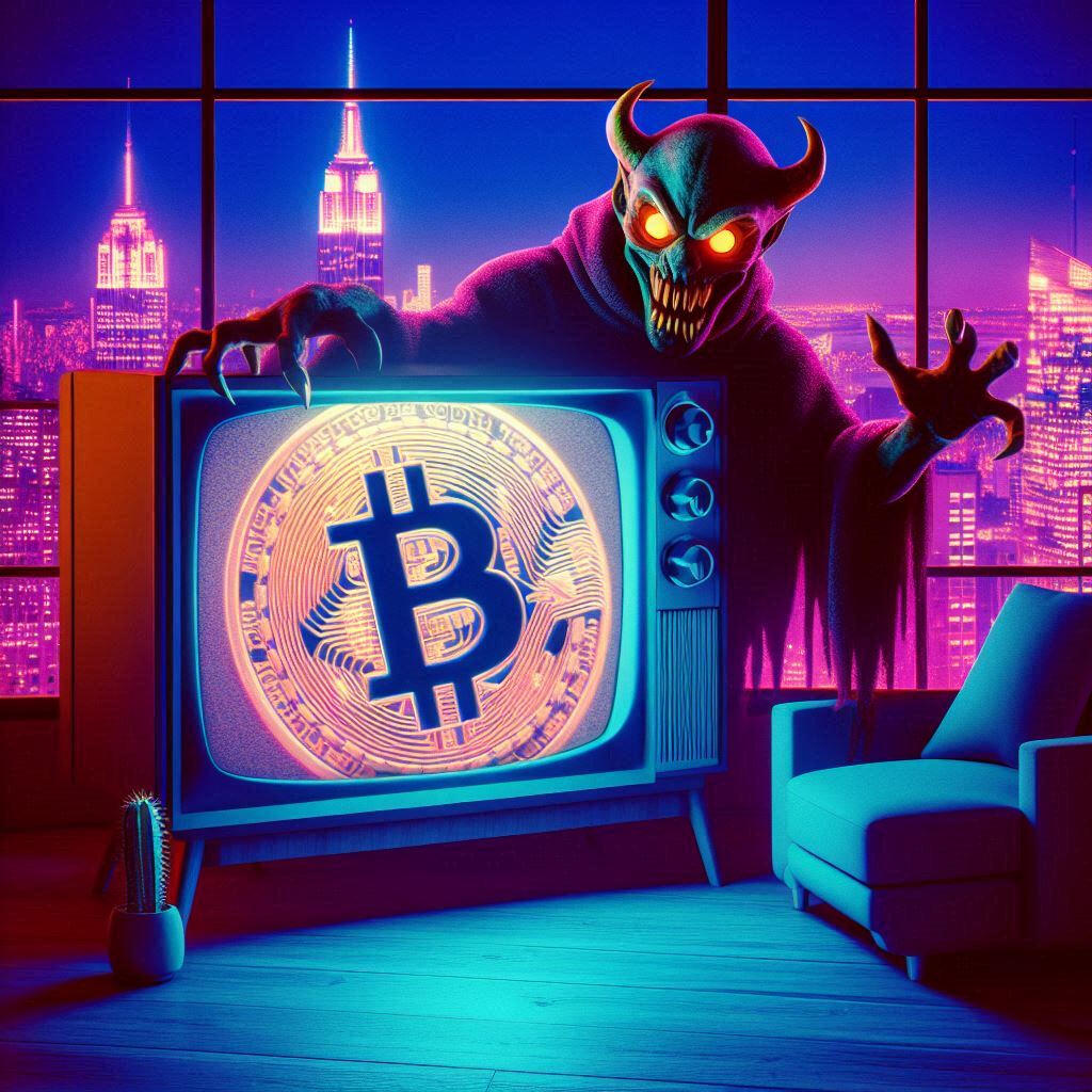 In the heart of New York City, where skyscrapers stretch toward the heavens and neon lights never fade, something deeply disturbing has taken over the television airwaves.At first, it was just a flicker—a strange interference on the nightly news. Then came the distorted voices, breaking into morning talk shows, whispering forgotten crypto secrets.And now? The Bitcoin Monsters are fully in control.Every channel, from Wall Street stock tickers to late-night comedies, now features terrifying digital creatures, claiming dominance over the airwaves. News anchors stare in horror as their scripts are rewritten by unseen forces. Game show contestants answer questions posed by glitching monster-head hosts, laughing in distorted voices.But the real nightmare unfolds on the Times Square billboards, where monstrous figures loom over Broadway, their eyes flashing Bitcoin market data in cryptic, pulsating signals.Viewers at home? They have no way to turn it off. Every attempt to change the channel only brings more Bitcoin Monsters, more eerie warnings, more messages from the blockchain’s forgotten depths.Who controls the signal? Who unleashed the invasion? And most importantly… what happens when they start broadcasting demands?New York City is watching. And the Bitcoin Monsters are watching back.