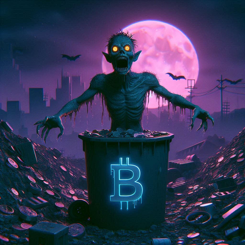 People once believed Bitcoin would always remain digital—but they never accounted for their own carelessness.Over the years, millions of Bitcoin have vanished forever—not due to theft or hacking, but because of simple human mistakes. Lost passwords, destroyed hard drives, discarded laptops—never to be recovered. And all of them ended up in one place: the landfills.The Bitcoin Monsters know that the last remnants of the world’s digital wealth aren’t buried in mining farms—they are buried in the rubble.These creatures scour the vast heaps of discarded technology, digging through old electronic waste, searching for wallets long forgotten by their human owners. Some scan corroded hardware with their neon-lit sensors, while others tear into dead servers, hoping to find a last, pulsing piece of lost code.And then, there's the legend—a story whispered among scavengers and seekers. Somewhere, deep beneath the wreckage, a single hard drive still remains intact. The final, great lost Bitcoin fortune—hunted by every monster and every human alike.But the real question is… who will find it first?