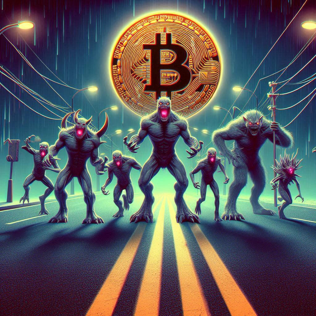 The hunt for Bitcoin isn’t always brutal. Sometimes, it’s silent—smooth, calculated, unfolding in the hazy depths of nighttime bars.As people sip their cocktails, lost in the pounding bass of neon-lit DJ booths, no one suspects that the monsters are already here.The Bitcoin Monsters never strike with chaos in places like these—no, they prefer to watch. Some lurk in the shadows, silently passing those who hold secret Bitcoin wallets. Others appear as bizarre illusions, blending seamlessly into the electric swirl of the nightlife.Deals are made in the dark—hidden trades, final blockchain transactions, fortunes vanishing into the void. And the monsters know that if they wait long enough, an abandoned digital key or a careless code entry will be theirs to claim.Do some patrons feel their presence? And if they do… what happens to those who share a last drink with the monsters?