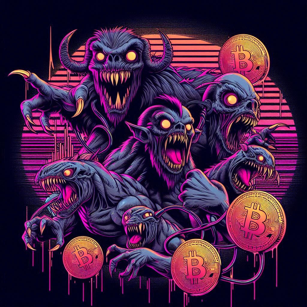 Deep within the digital underworld, where LED lights flicker and data streams pulse, Bitcoin Monsters prowl the vast labyrinth of server rooms, feeding on the very essence of the blockchain—Bitcoin itself. Their hunger knows no limits, and their monstrous forms evolve with every bite, transforming them into legendary creatures infused with raw cryptocurrency power.This NFT collection brings to life the chaotic energy of these Bitcoin-devouring beasts, blending cyberpunk aesthetics with the primal nature of digital consumption. Each monster is unique, shaped by its insatiable appetite and the energy of the decentralized world.Step into the Bitcoin Monsters Universe—where digital predators roam and the future of currency is forged in the jaws of the abyss.Mint yours before they consume the blockchain itself.